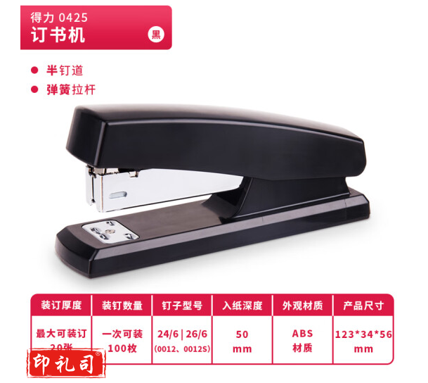 得力(deli)20页经典耐用订书机/订书器(适用12#钉) 黑色