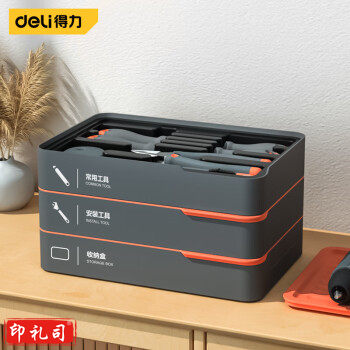 得力(deli)H1001-ADE T-BOX家用层叠式套装多功能维修工具箱电钻电工套装