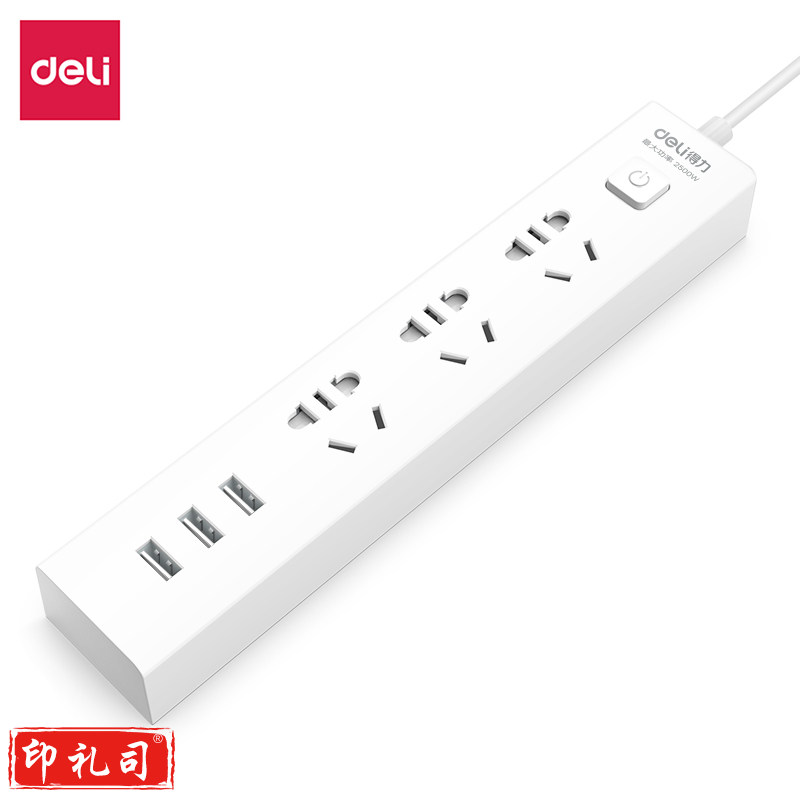 得力18288(1.8)插座_3组 3U_1.8米_彩盒装(白)(只)