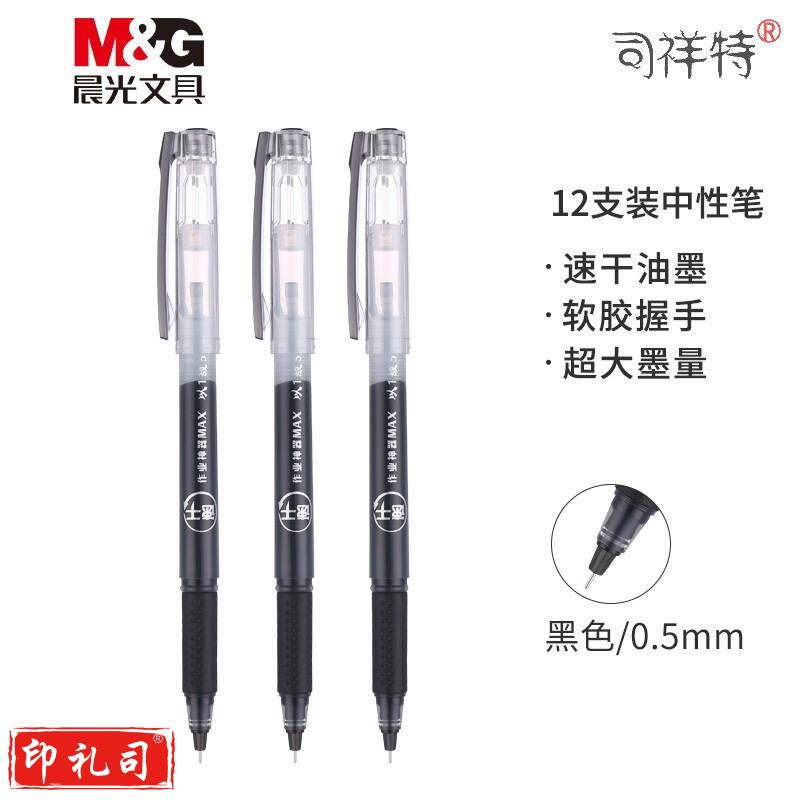 晨光(Mamp;amp;G)文具黑色0.5mm速干中性笔 大容量全针管签字笔 软握办公水笔 12支/盒AGPC2101
