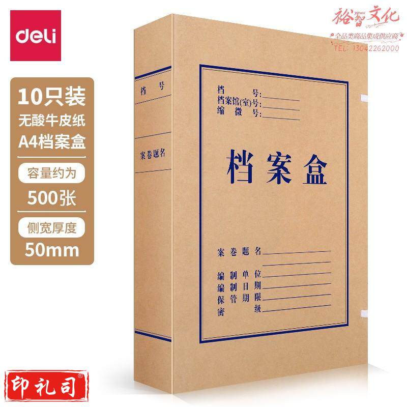 得力 5612 无酸牛皮纸档案盒(棕黄)(10个/包)