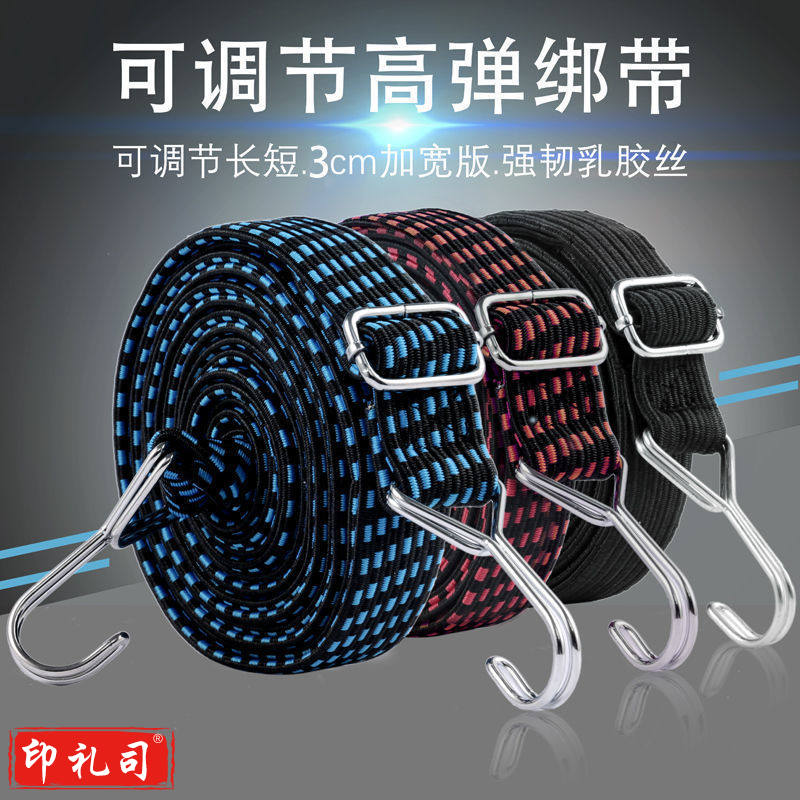 弹力绑带 摩托车电动自行车可调节捆绑带行李弹力绳山地车捆扎带松紧绳1米 全黑、黑红、蓝黑三色可选