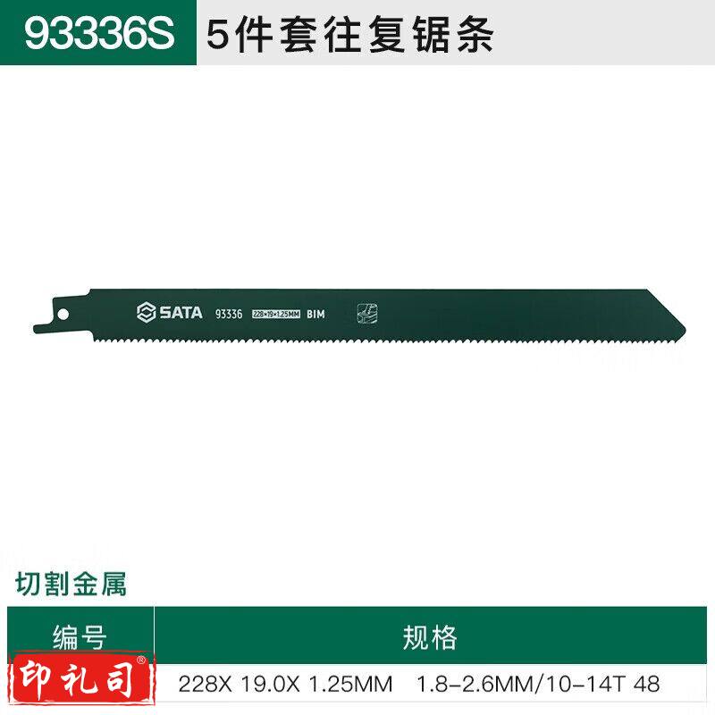 世达(SATA)93336S 5件套往复锯条228MM,10-14T