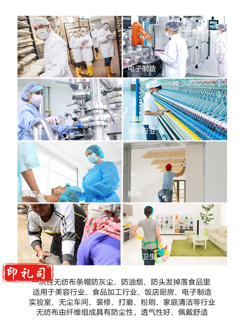 一次性头套帽子厨师工作帽防尘防污头罩车间房网帽防油烟无纺布条形帽白色