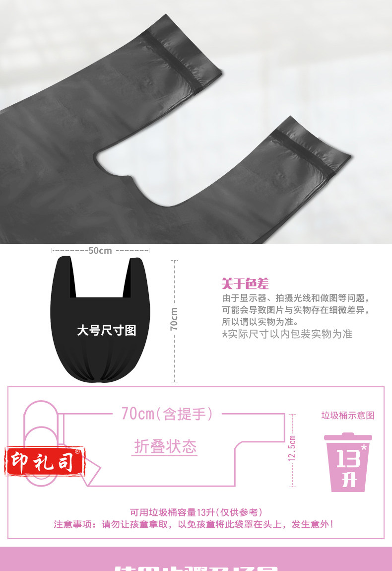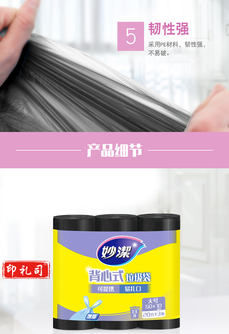 妙洁 手提背心式垃圾袋 大号 加厚黑色 文明干湿分类