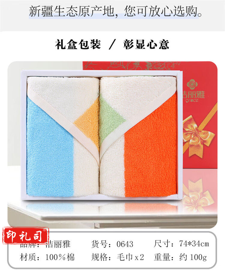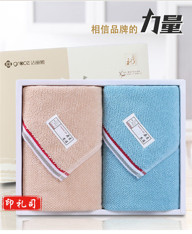 洁丽雅洁丽雅毛巾礼盒2条装全棉纯色面巾加厚情侣洗脸巾团购回礼用两条 6717双红蓝商务盒 72x34cm