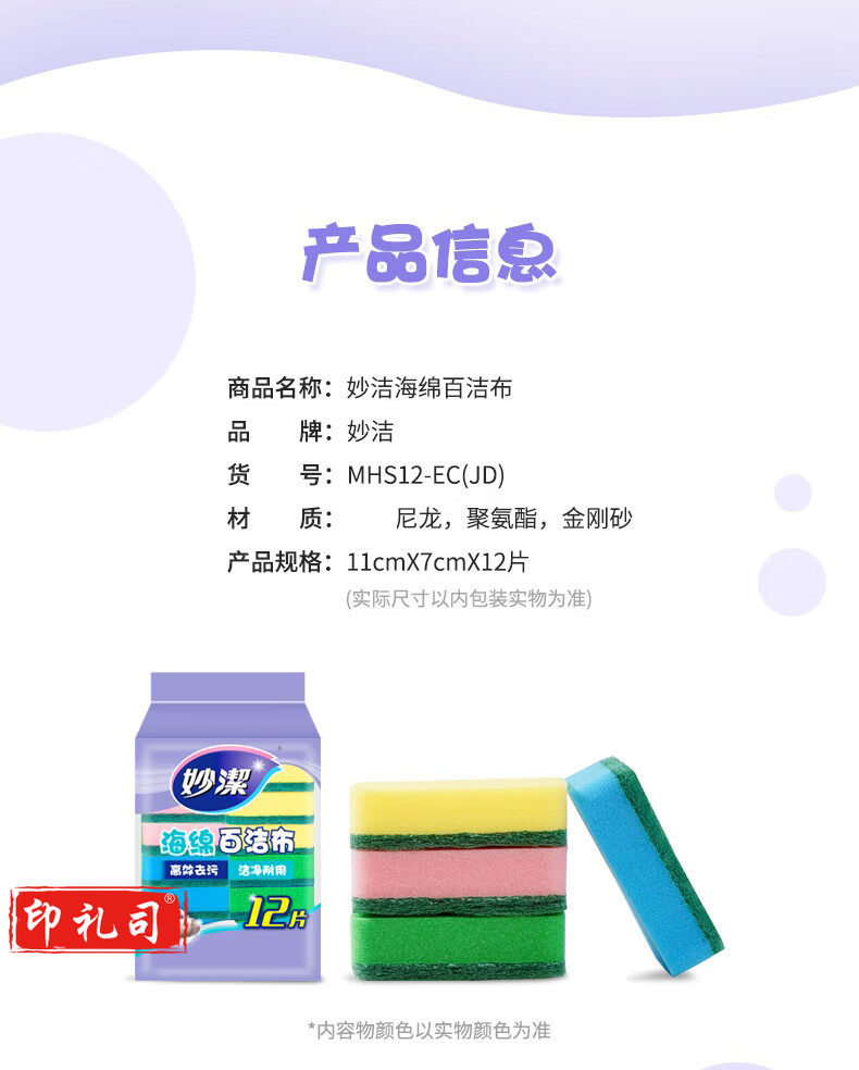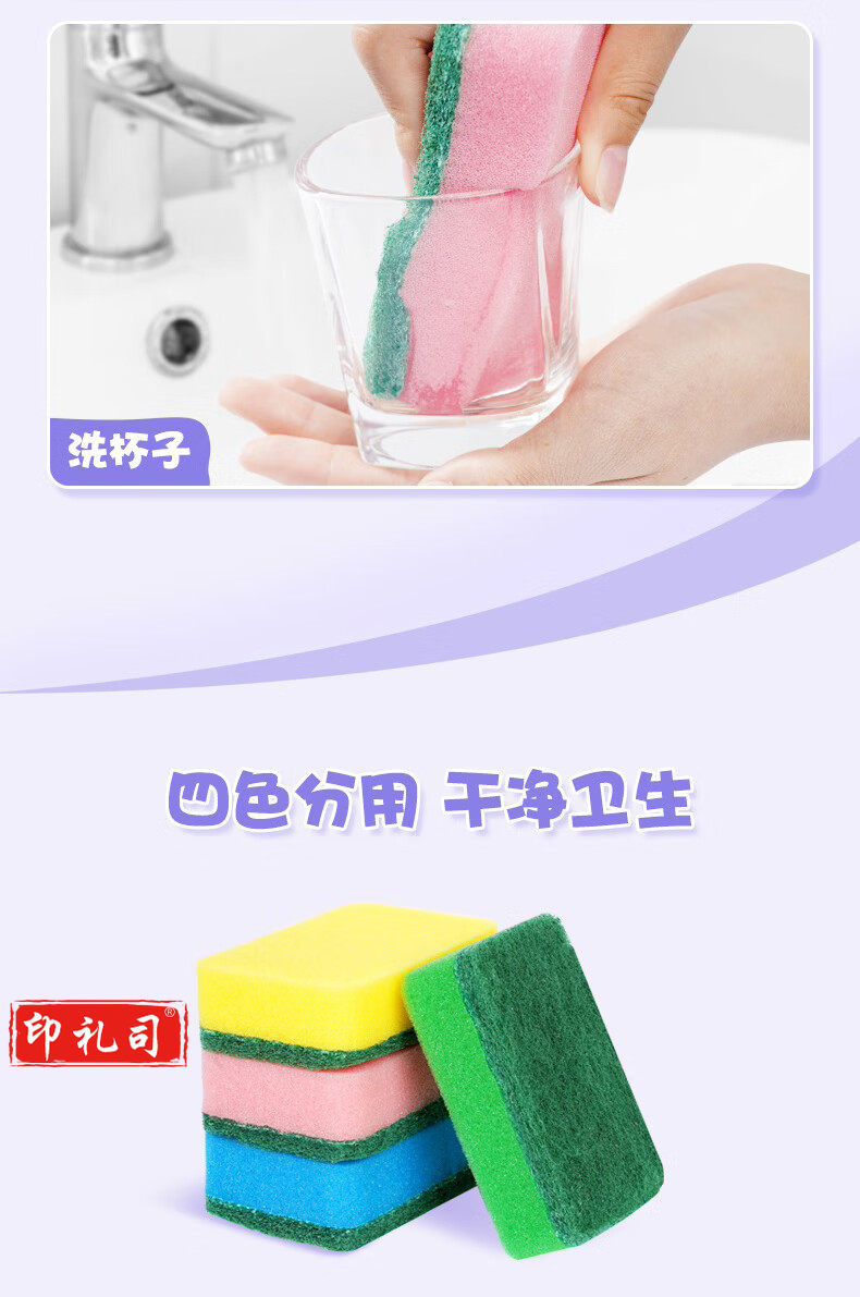 妙洁海绵百洁布 四色分用去油污抹布厨房洗碗棉