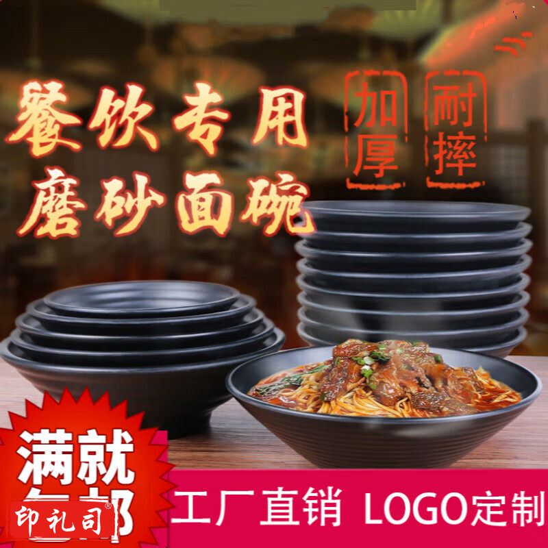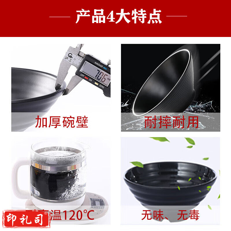密胺面碗餐具黑拉面汤碗麻辣烫面馆专用碗 圆碗8英寸_直径约20.4m