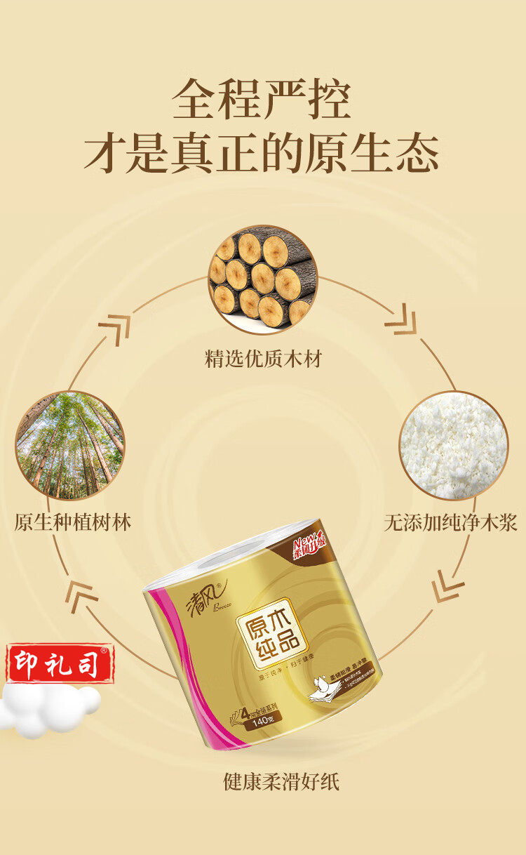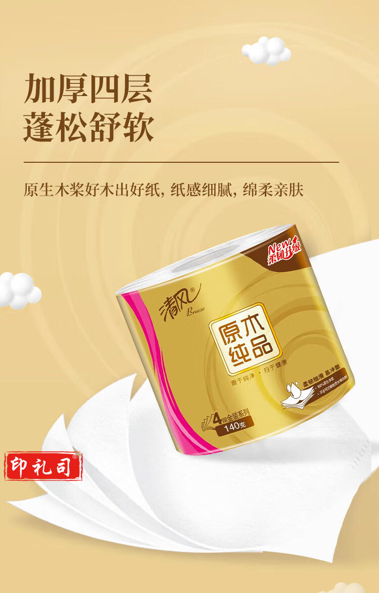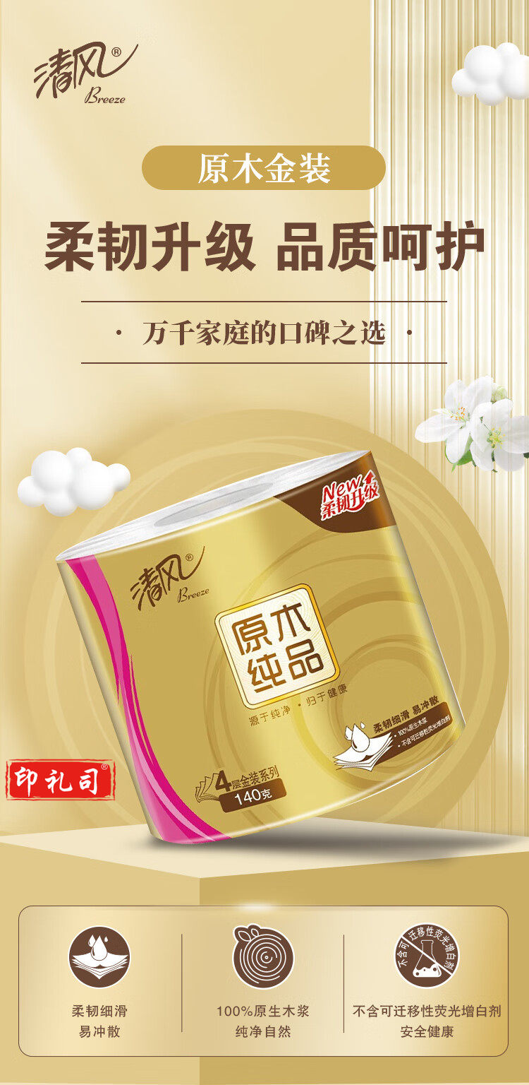 清风有芯卷纸 金装4层140克*10卷 卫生纸卷筒纸 纸巾卷纸