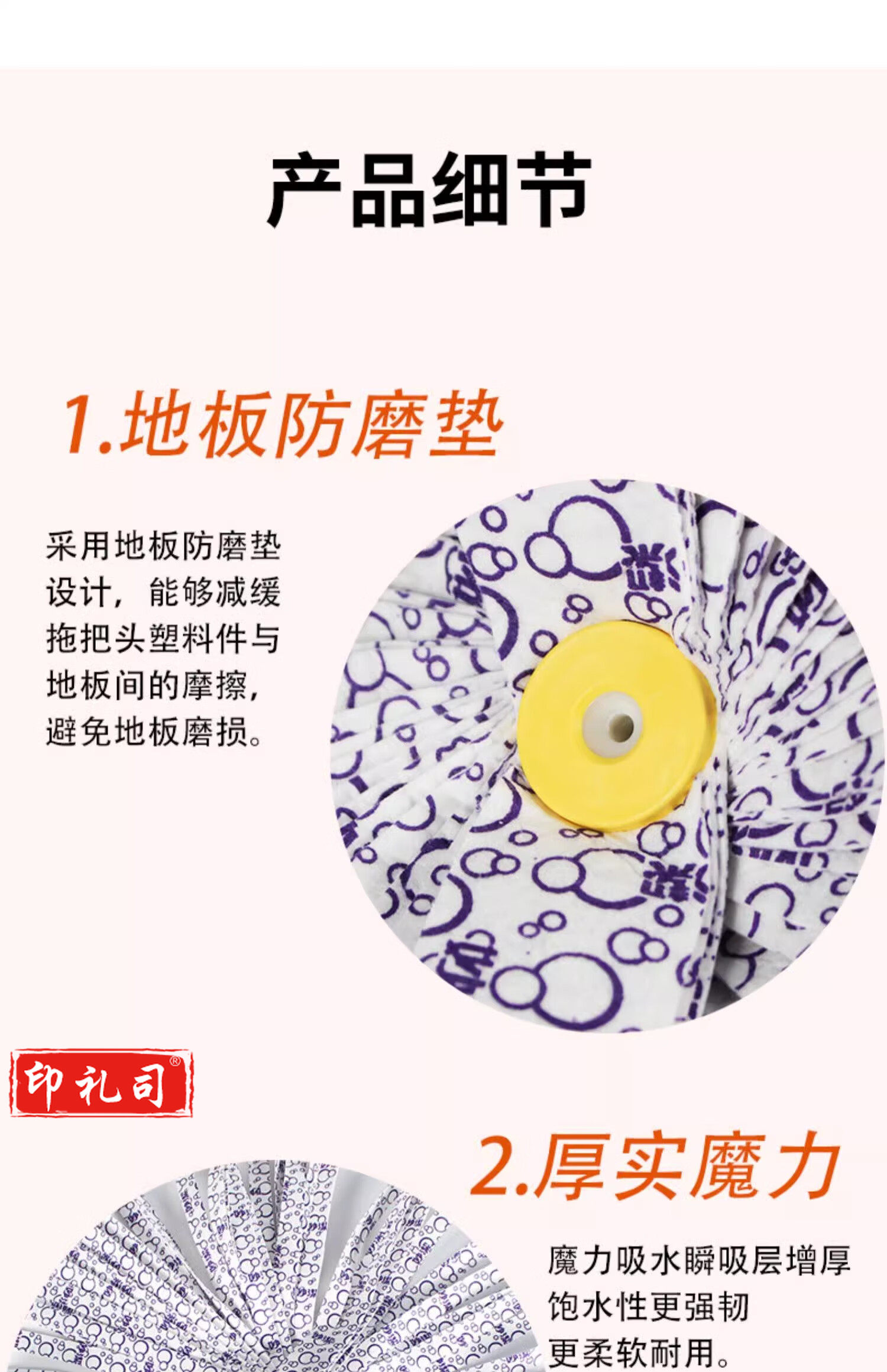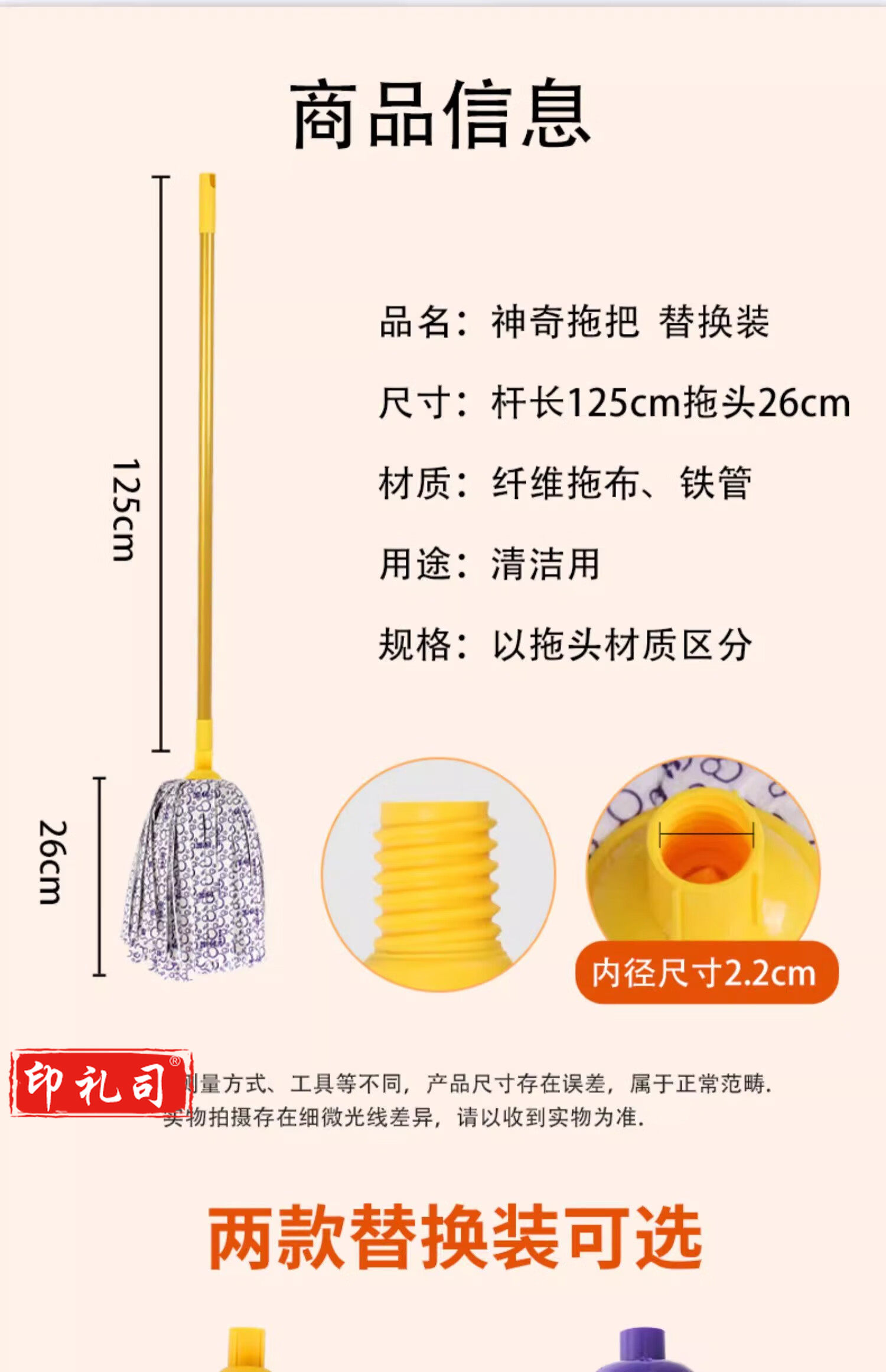 妙洁长杆拖把墩布自拧水拖把 无纺布拖把1杆1头