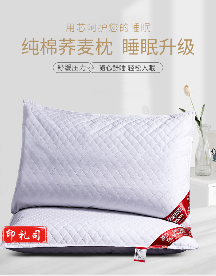 雅鹿·自由自在 全棉荞麦枕头枕芯100%荞麦皮填充约5斤单只装46*72cm纯白色