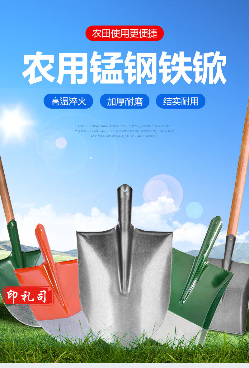1.2米木柄铁锹 钢制方铲 泥锹铁铲铁锨铁锹园林 农用防汛抗洪 加厚加重本色尖铲