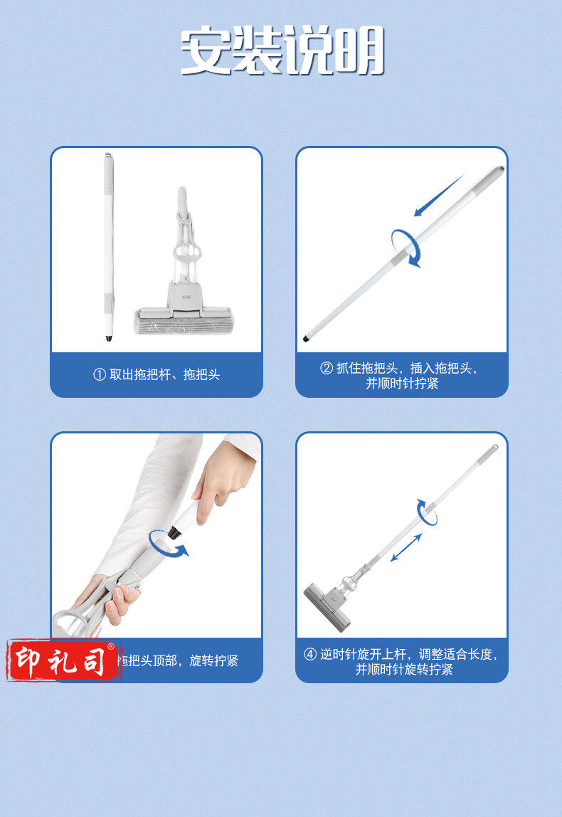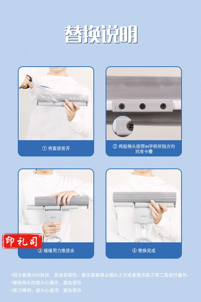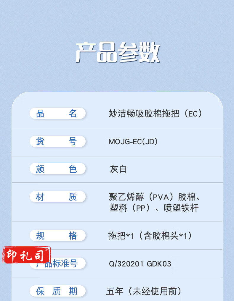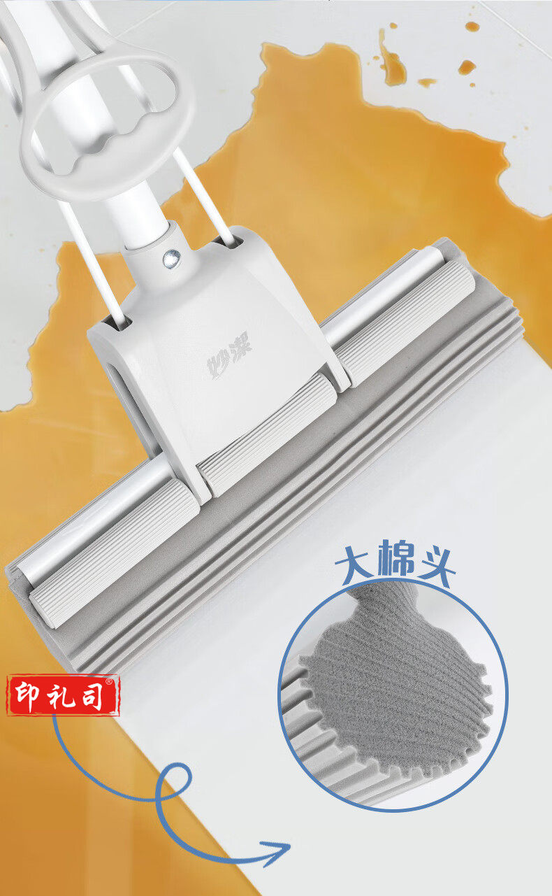 妙洁畅吸家用办公室免手洗强吸水挤水式胶棉拖把 共计1个胶棉头