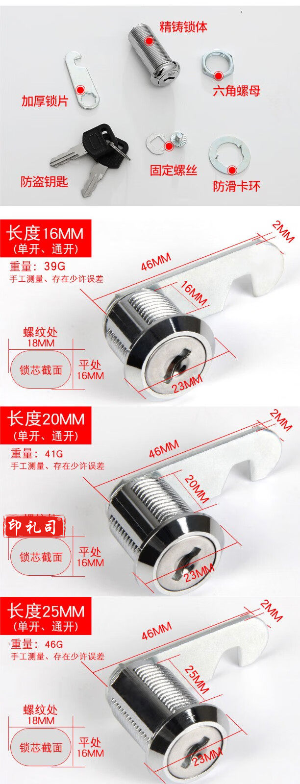 一字锁抽屉锁通用匙通开衣柜锁铁