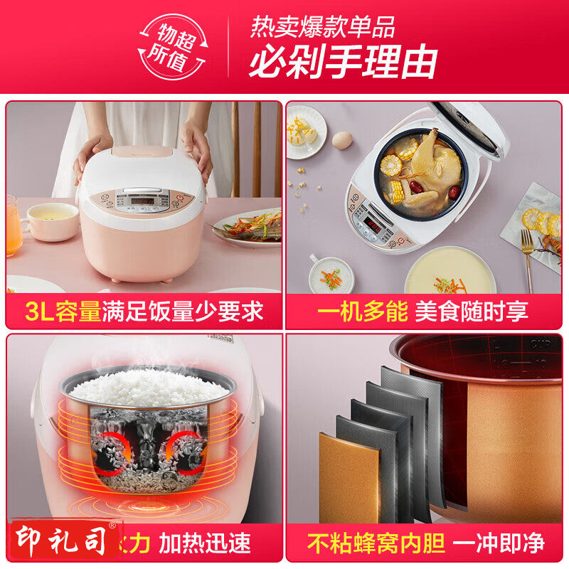 美的(Midea)电饭煲小电饭锅迷你3L微压蒸汽阀24小时预约黄晶内胆家用蒸米饭锅
