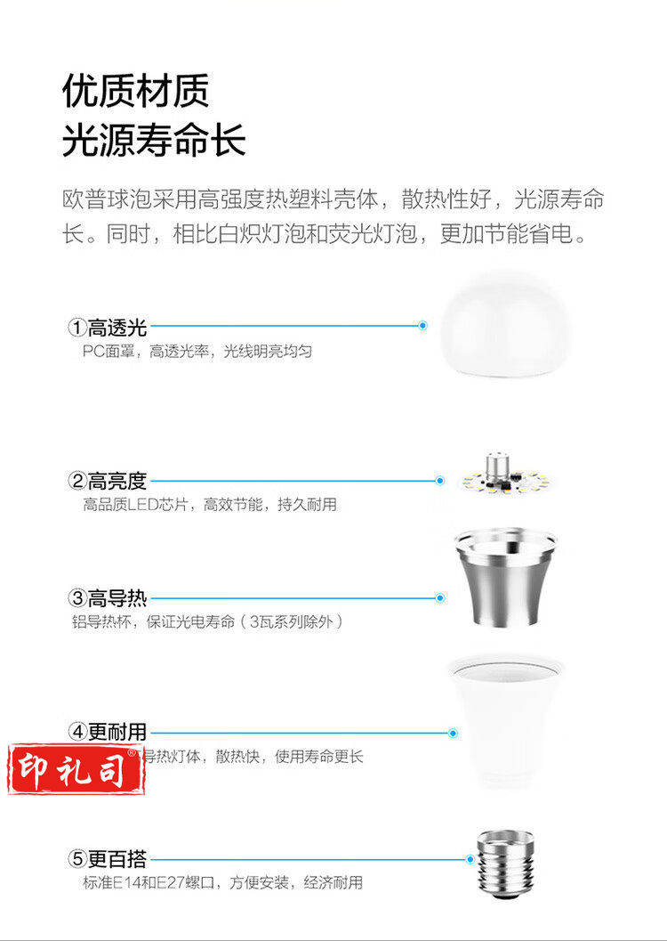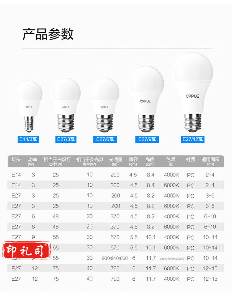 欧普(OPPLE)led灯泡节能大螺口家用商用大功率光源超亮E27高显色球泡螺旋 【高显色】6W白光【E27大螺口】