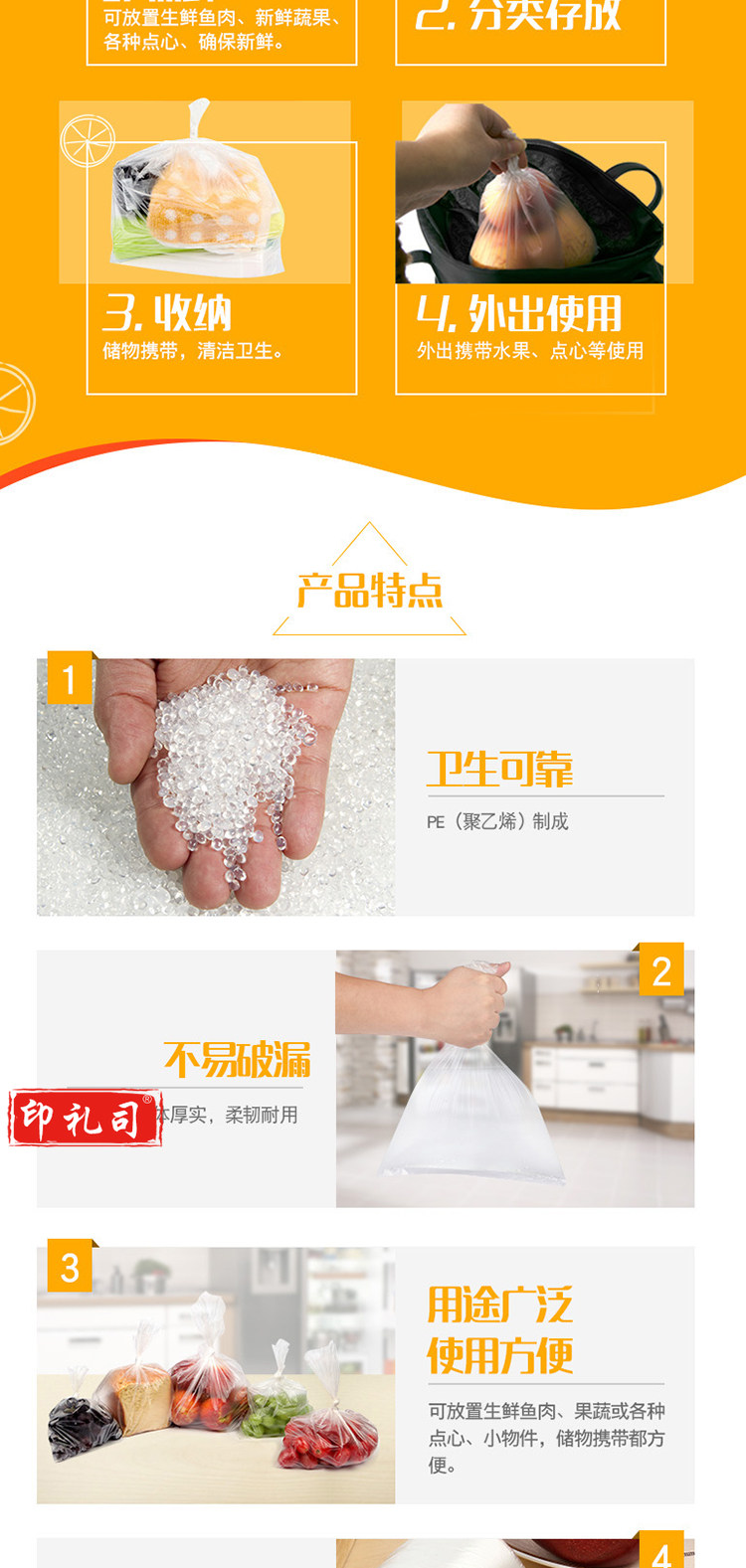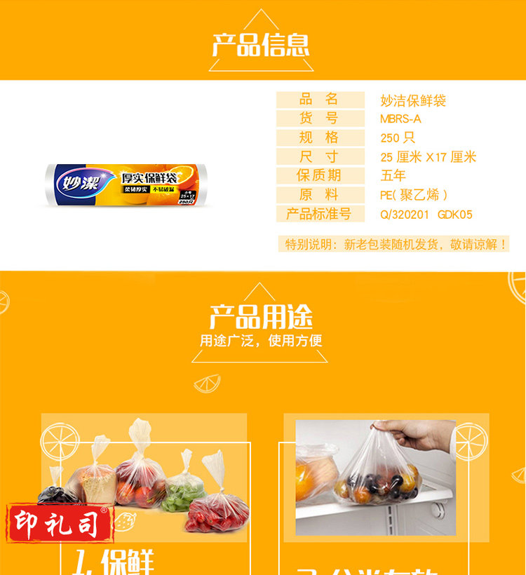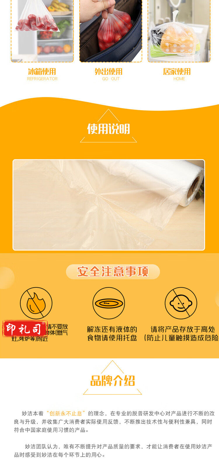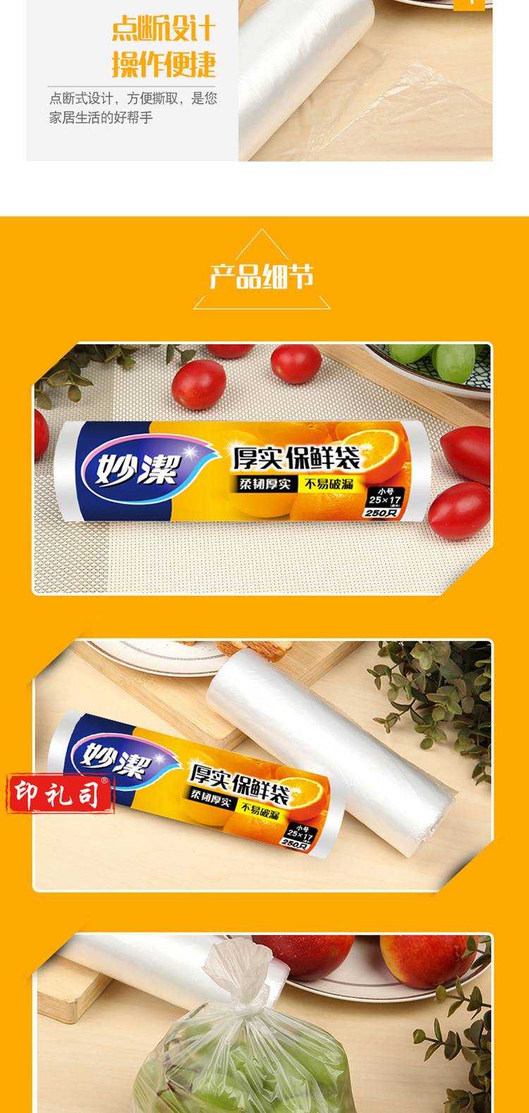 妙洁小号保鲜袋250只 加厚实塑料保鲜食品袋子厨房