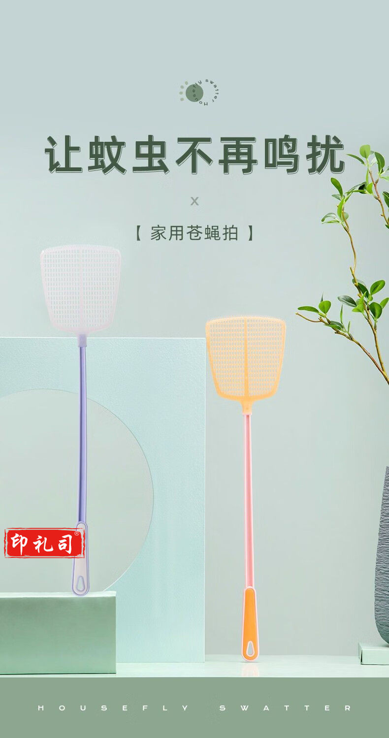 茶花塑料苍蝇拍蝇子拍蚊子加厚长柄灭蚊虫拍家用蝇拍厨房拍子蚊虫拍 颜色随机 1只装 款式颜色随机发