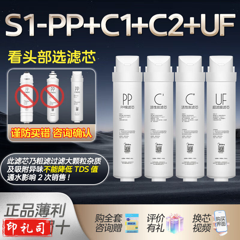 Midea美的净水器家用厨下式小白超滤净水机MU1861A一体芯不插电无废水 美的超滤MU163A-4(四个滤芯)