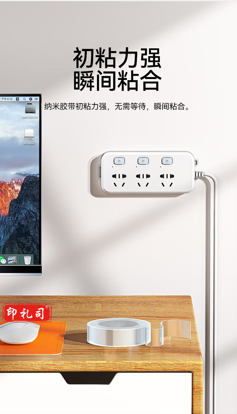 山泽纳米胶带30mm*5m 强力无痕魔力胶带 透明家用车用双面胶固定贴防水胶