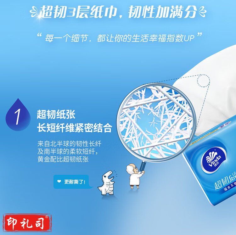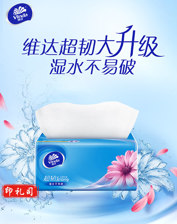 维达(Vinda)抽纸 超韧3层150抽*24包M码 湿水不易破 纸巾卫生纸 餐巾纸 整箱