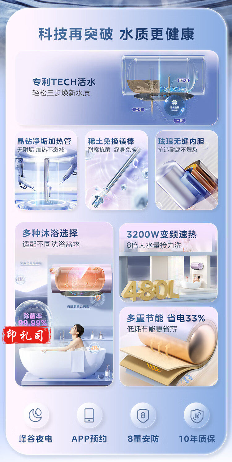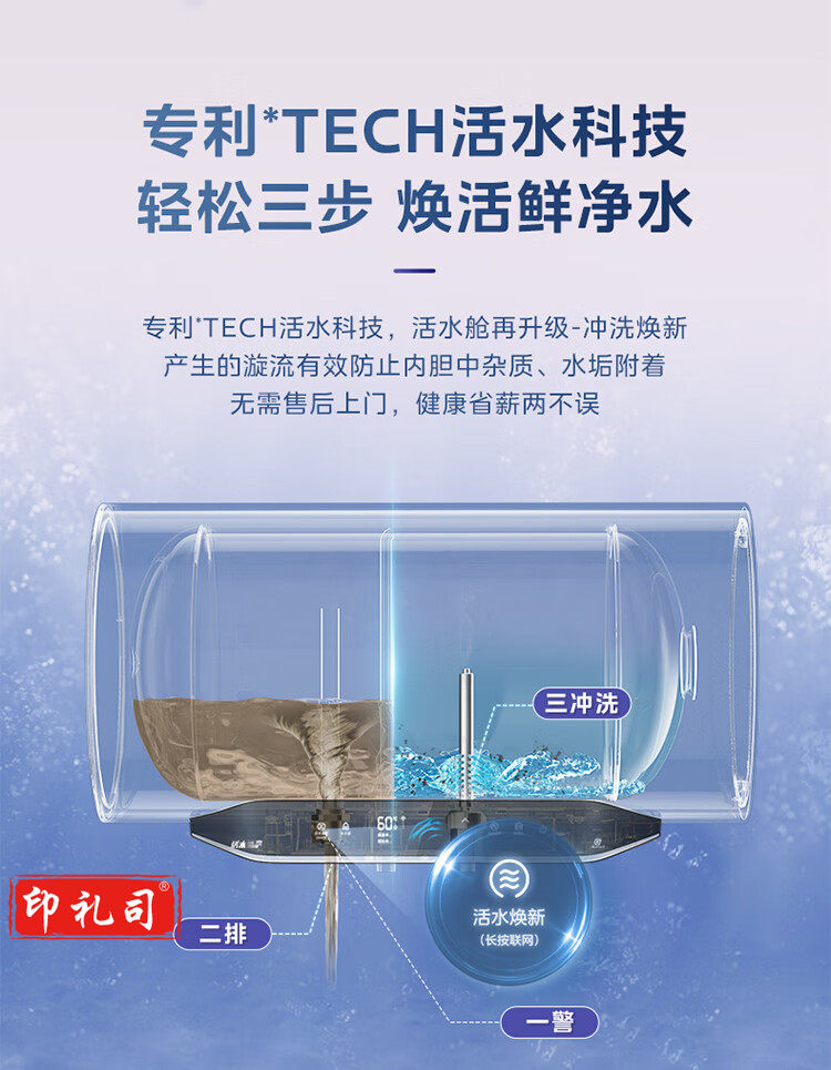 美的(Midea)TECH活水60升3200W变频速热10重过滤终身镁棒免更换