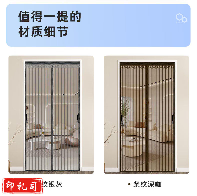 全磁条防蚊门帘磁性自吸磁吸纱窗魔术贴免打孔纱门夏季防蝇沙门网 金刚网咖啡色 条纹款【三边加宽】 120*200