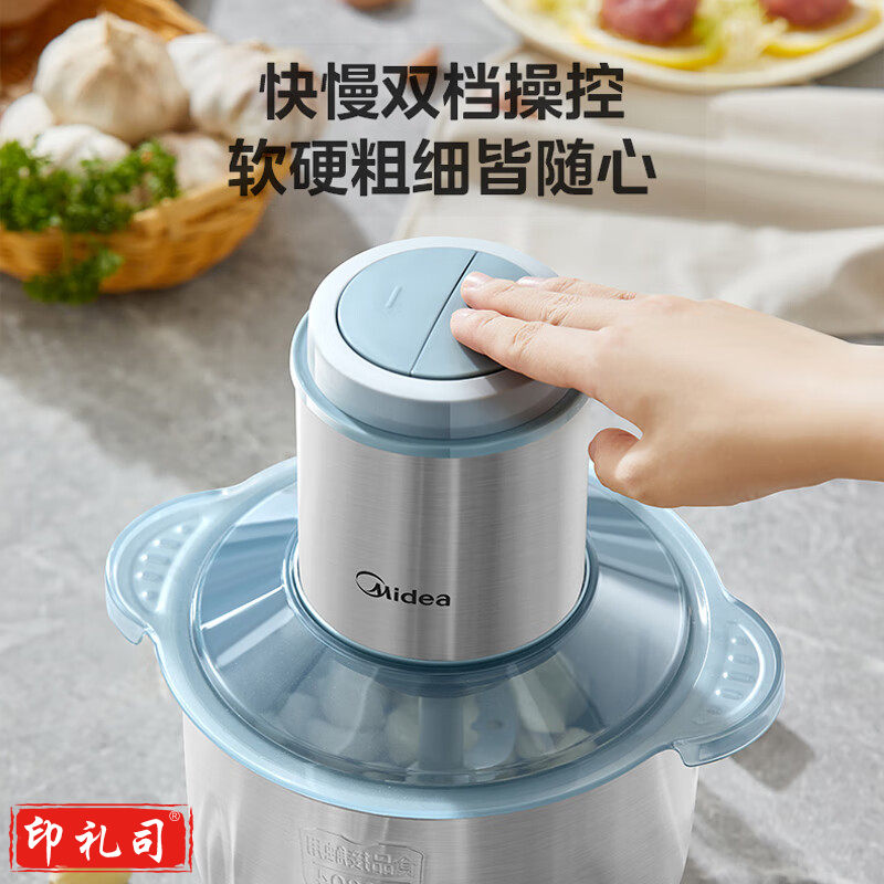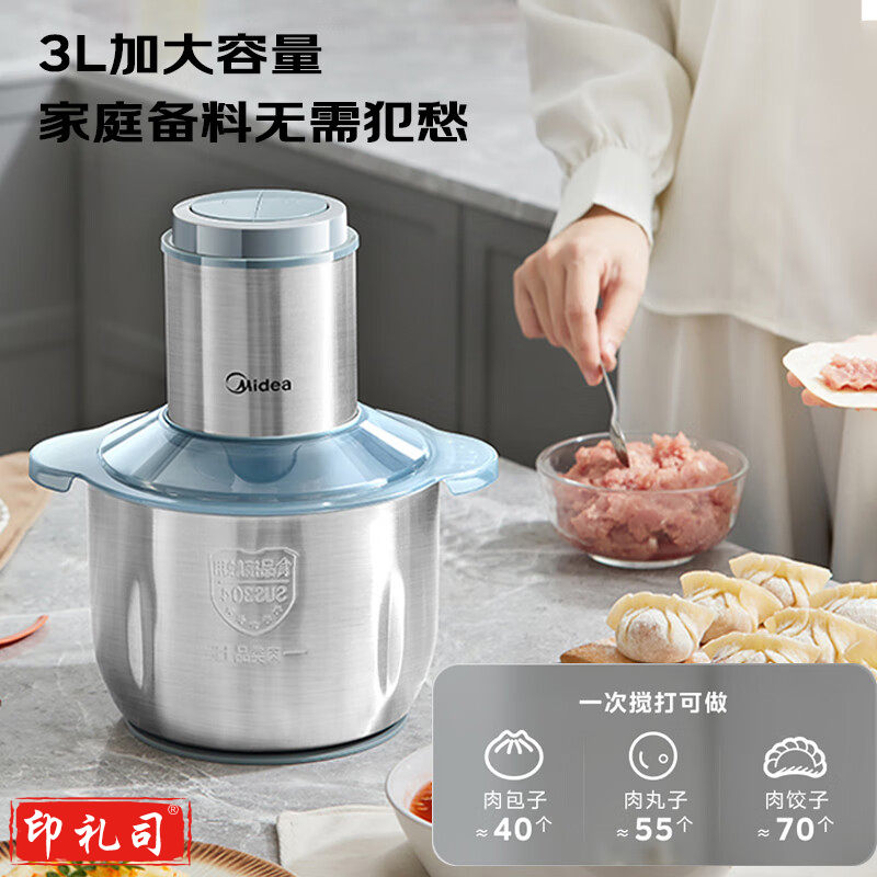 美的(Midea)绞肉机家用 料理机辅食机不锈钢绞馅机碎肉机3L大容量大功率电动绞肉以旧换新【双刀+匀菜杆】55B