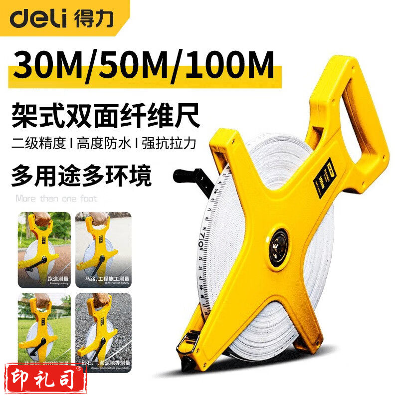 得力皮卷尺皮尺50米100软尺30量地尺20工地专用纤维尺布尺测量布 100米纤维皮尺 DL98100