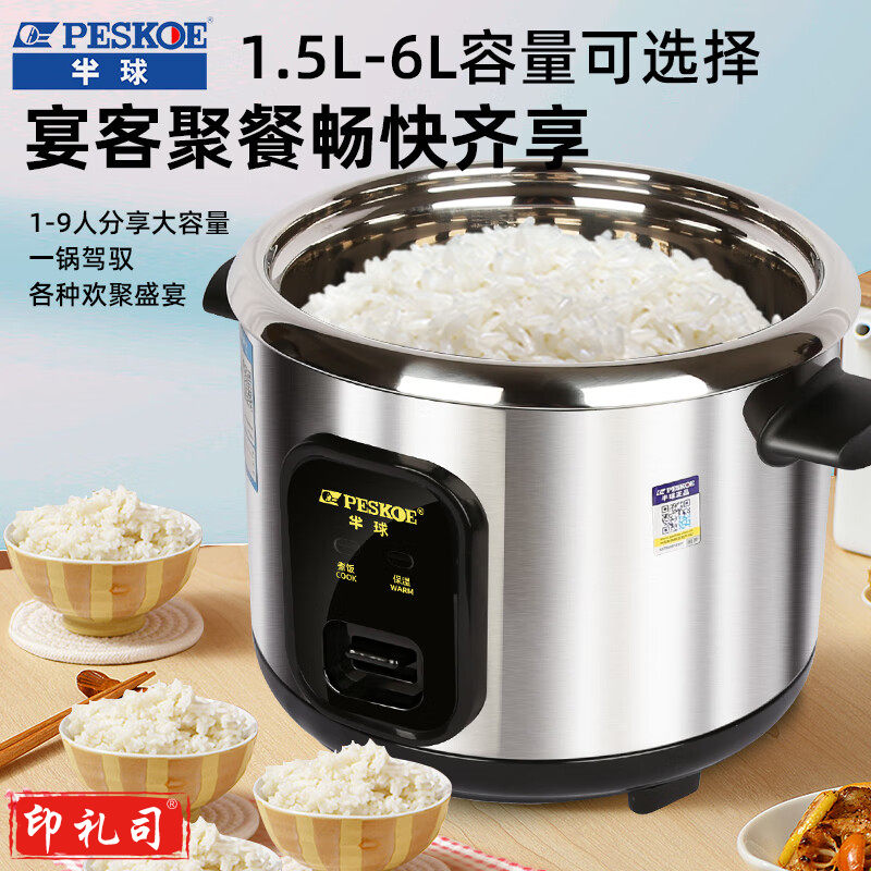 半球6L电饭锅电蒸锅真304食品级不锈钢0涂层内胆6升304内胆+304蒸笼+玻璃盖 6L
