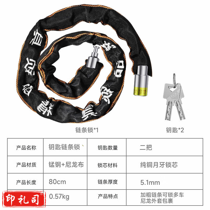 80CM链条锁自行车电动车锁铁链子锁防盗锁加长80CM仓库大门单车电瓶车