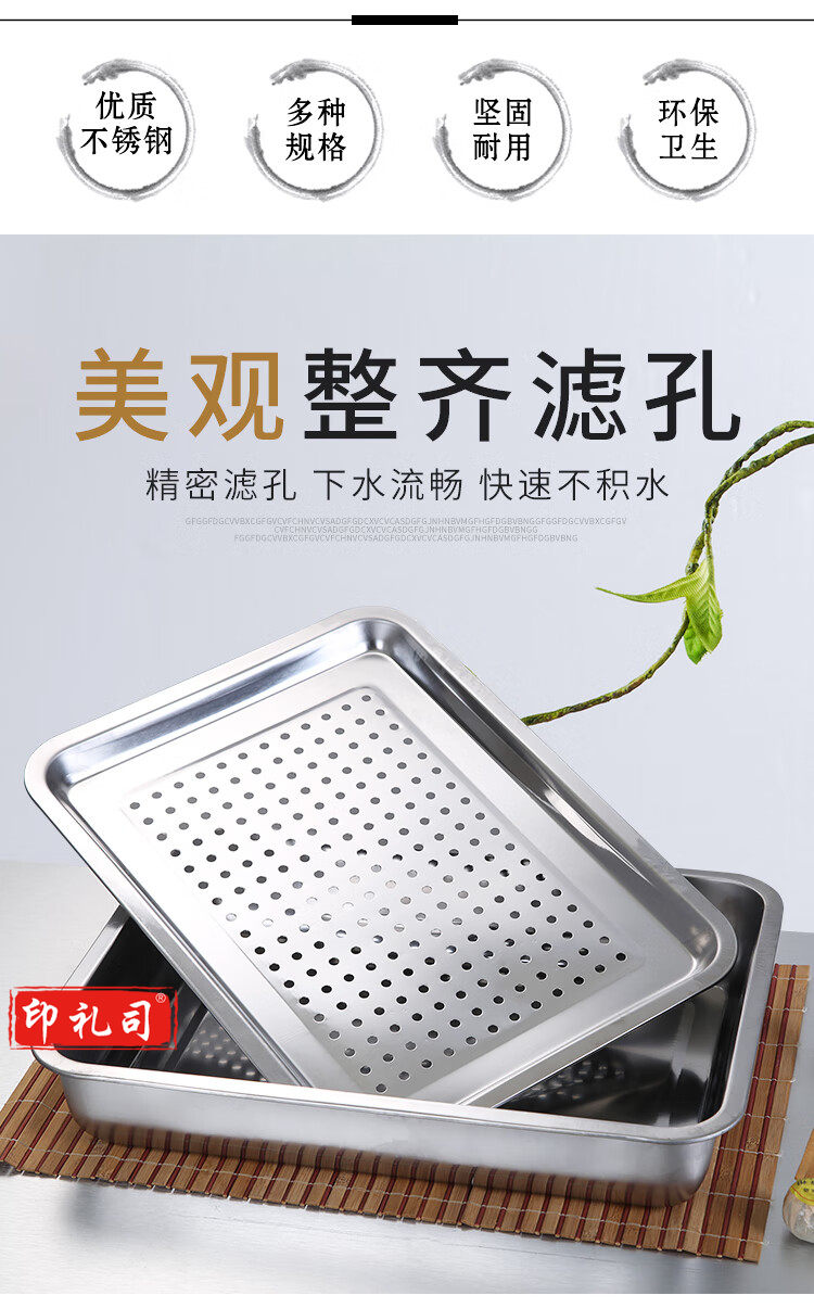 不锈钢漏盘长方形茶盘家用饺子沥水盘托盘漏油盘滤漏水沥油 60*40*2浅漏盘_单个
