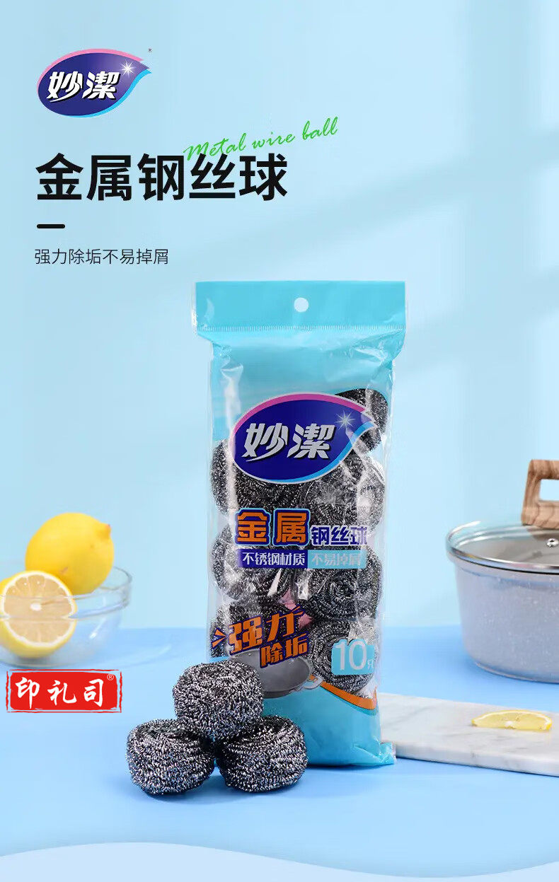 妙洁钢丝球不锈钢洗碗铁丝球刷锅球不断丝家用厨房金属清洁球 1包共6个