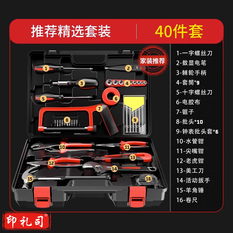 德力西(DELIXI)40件套工具箱五金工具箱万能家用多功能车载木工电工家庭专用维修套装