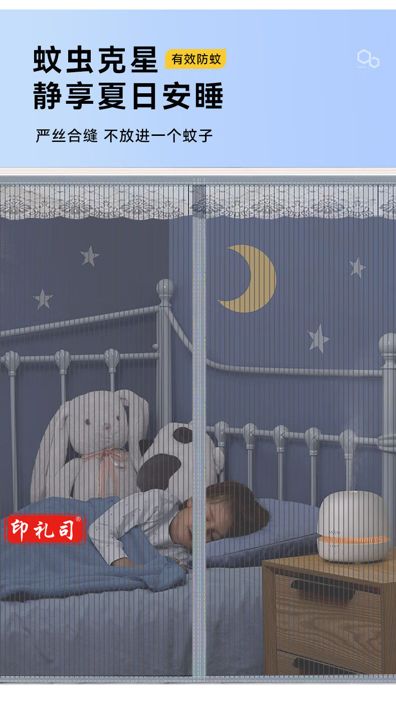 全磁条防蚊门帘磁性自吸磁吸纱窗魔术贴免打孔纱门夏季防蝇沙门网 金刚网咖啡色 条纹款【三边加宽】86*197
