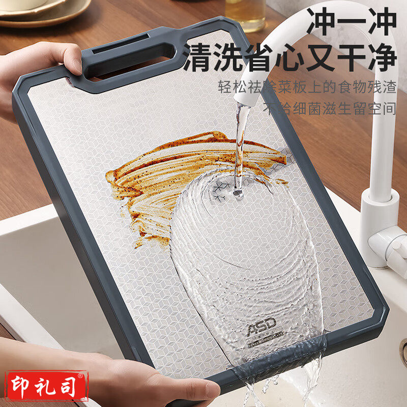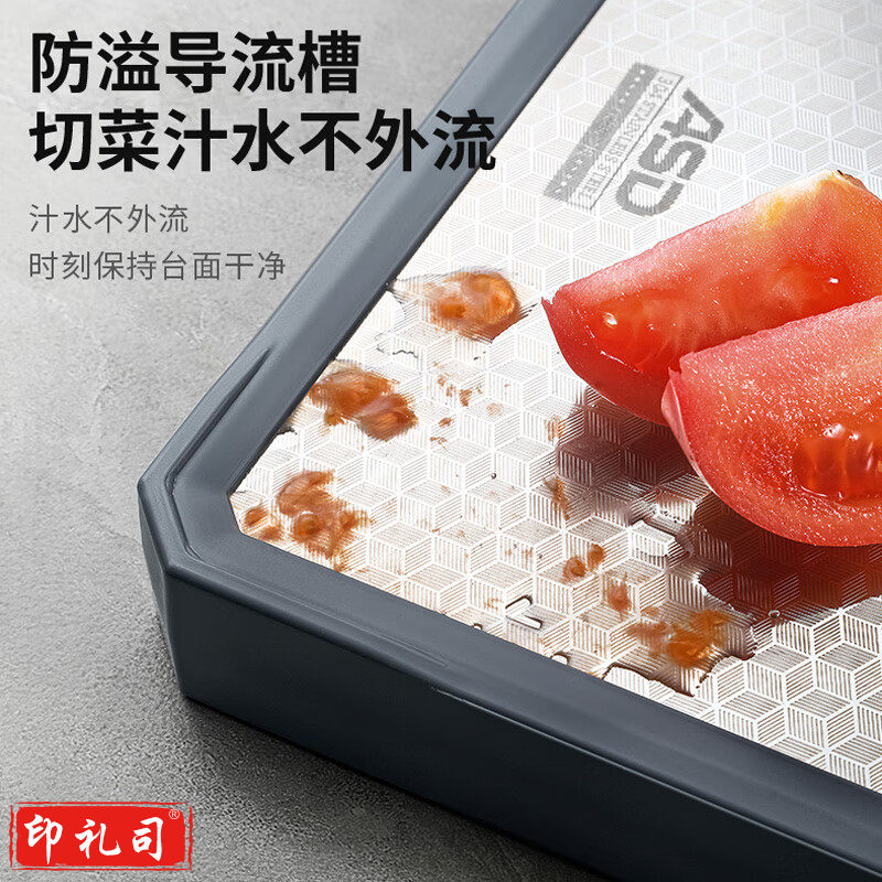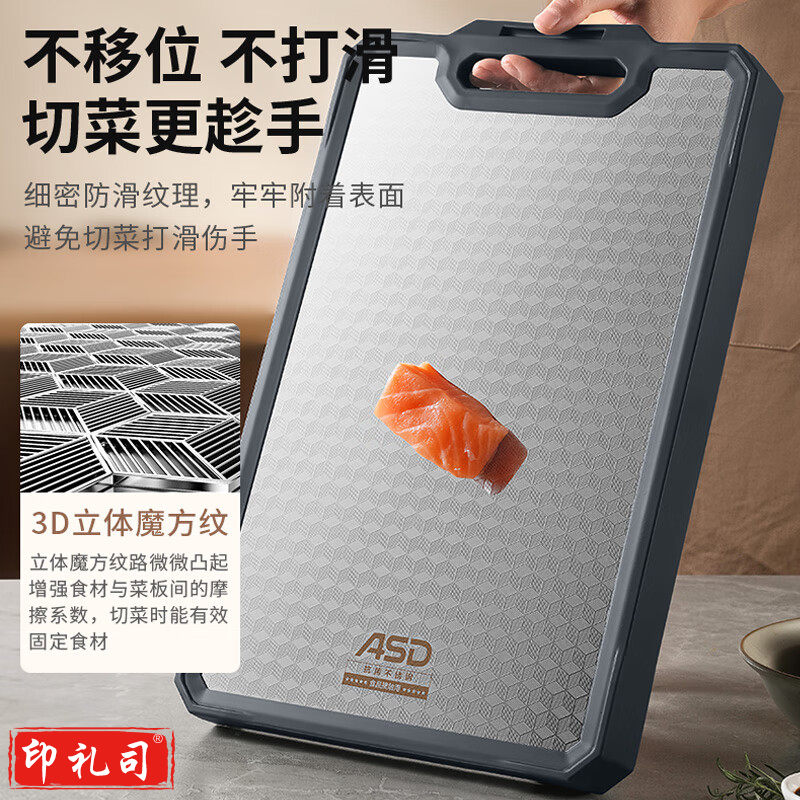 爱仕达砧板乌檀木整木双面菜板防霉抗菌家用实木切菜切肉板案板厨房专用 乌檀木+不锈钢 大号470*310*29mm