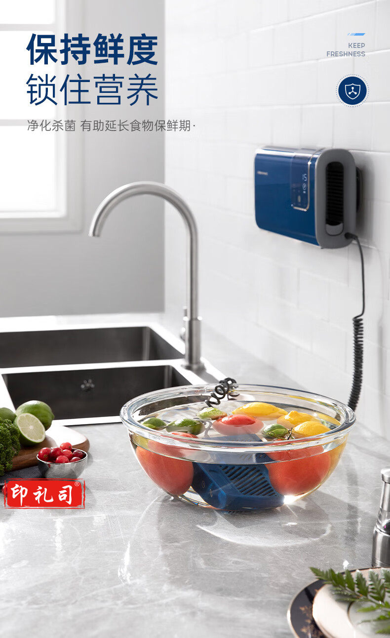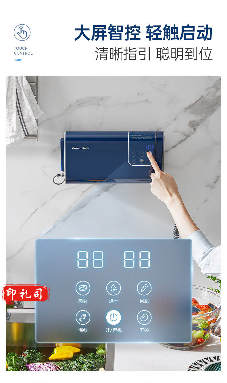摩飞电器(Morphyrichards)果蔬清洗机 家用双仓有线洗菜机 蔬菜水果分类去农残净化机 烘干消毒洗水果神器 MR2061 轻奢蓝