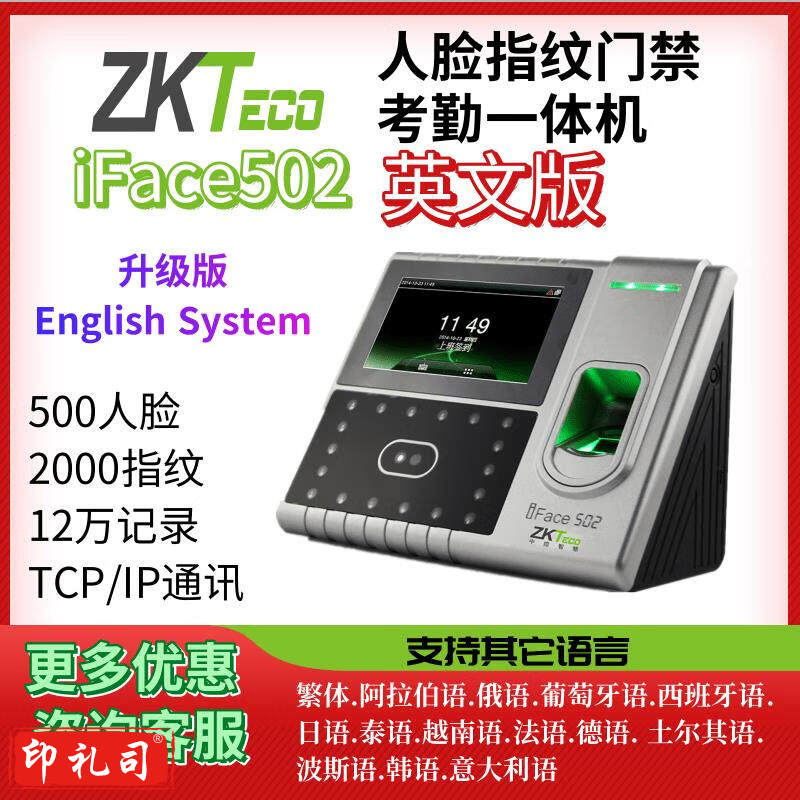 中控英文ZKT-iface702502人脸识别指纹员工考勤机多国语言ID卡打卡机