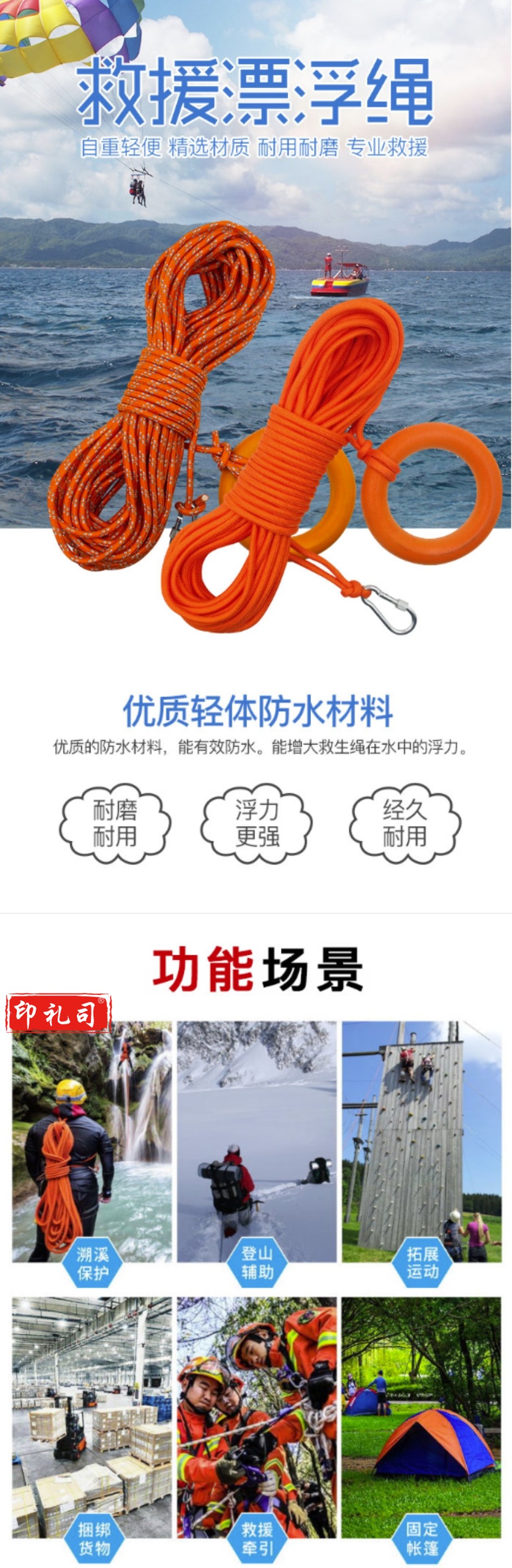 救生绳游泳绳子救援安全绳漂浮水上救生圈浮索逃生绳30m