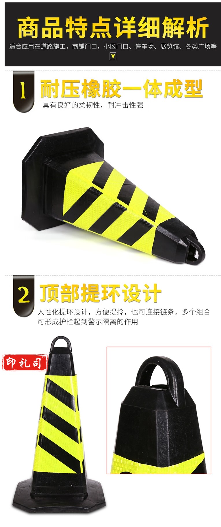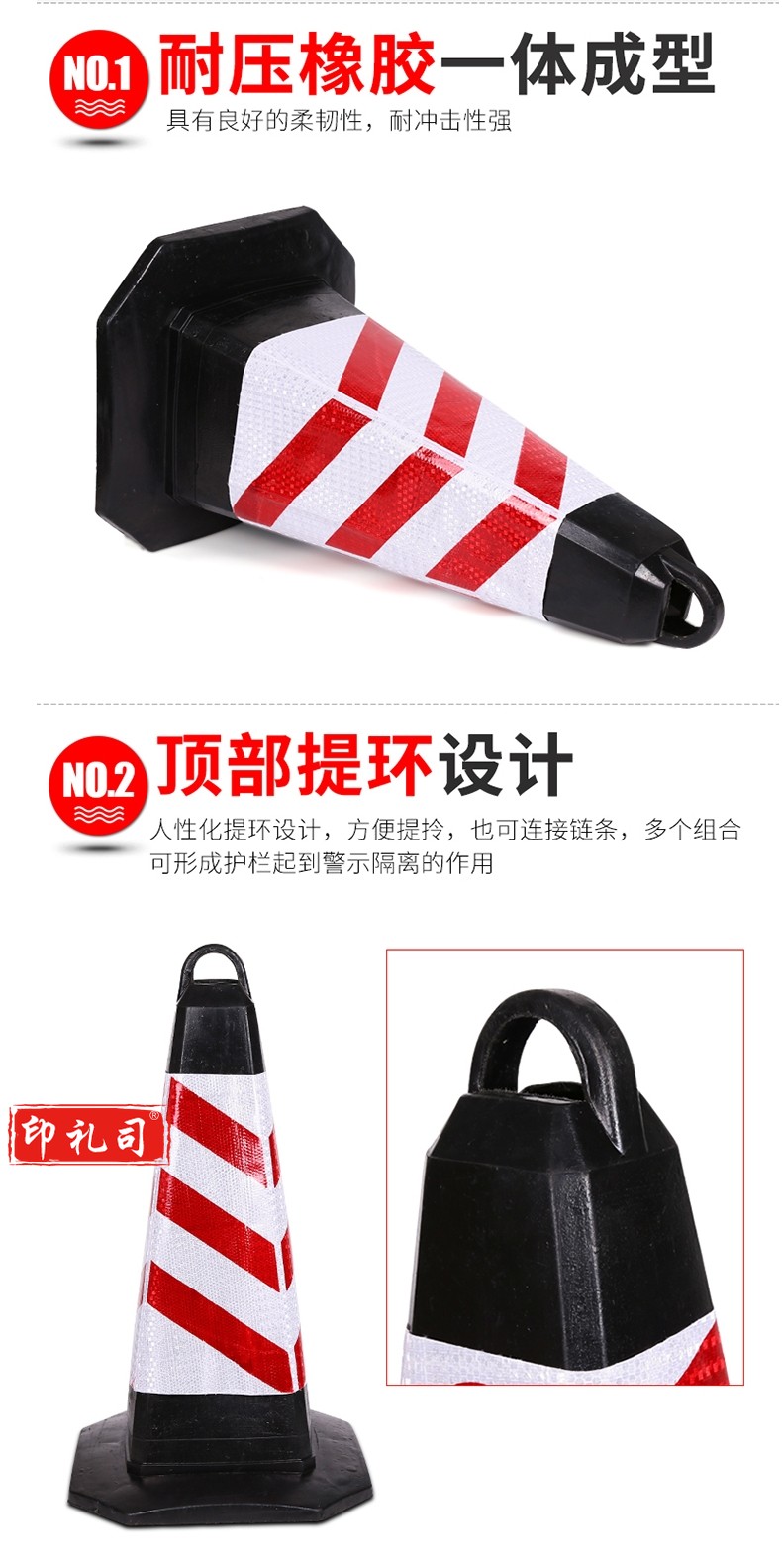 反光路锥橡胶方锥黑黄/红白
