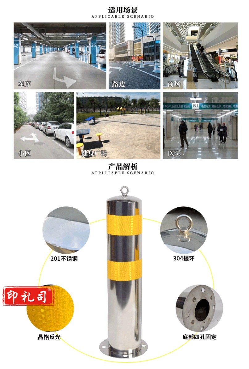 不锈钢警示柱防撞柱隔离桩停车桩挡车路障路桩地桩 挡车柱立柱(固定)