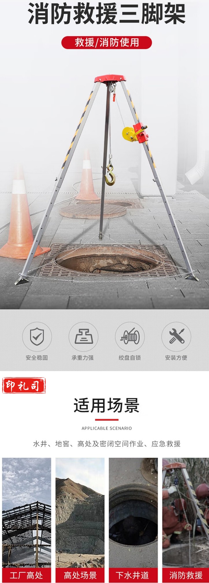 救援三脚架有限空间应急救援三脚架井口铝合金消防救援三脚架