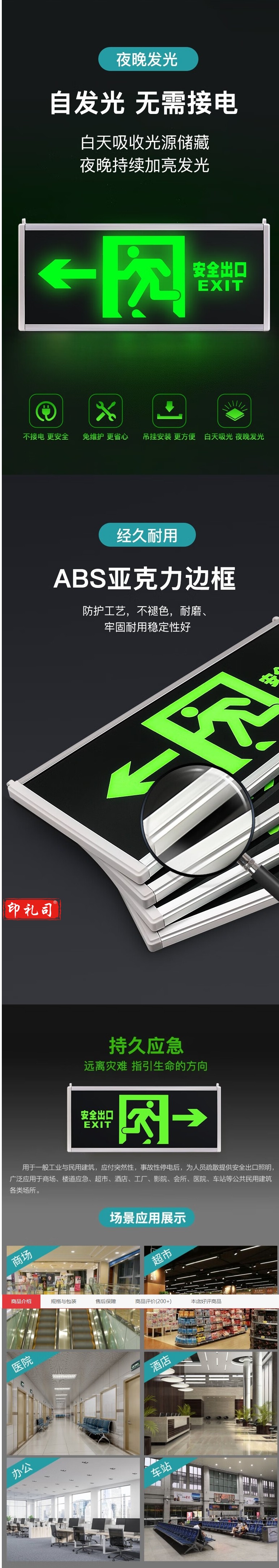 光安全出口指示灯牌夜光免接电墙贴消防应急出口疏散标识标牌