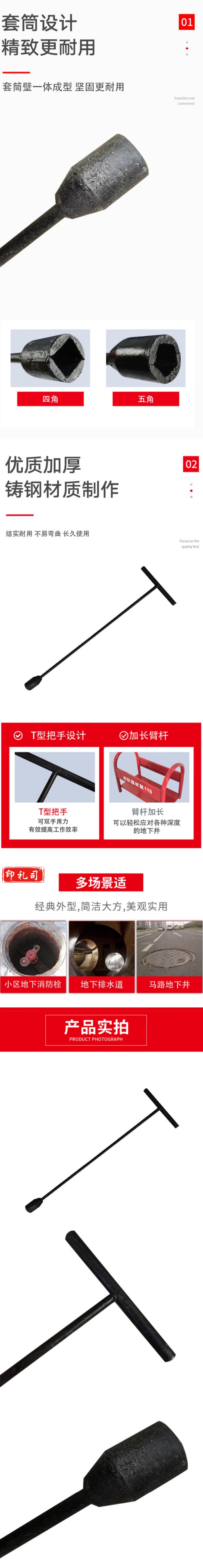 户外消火栓维修扳手 地下消火栓扳手四角款