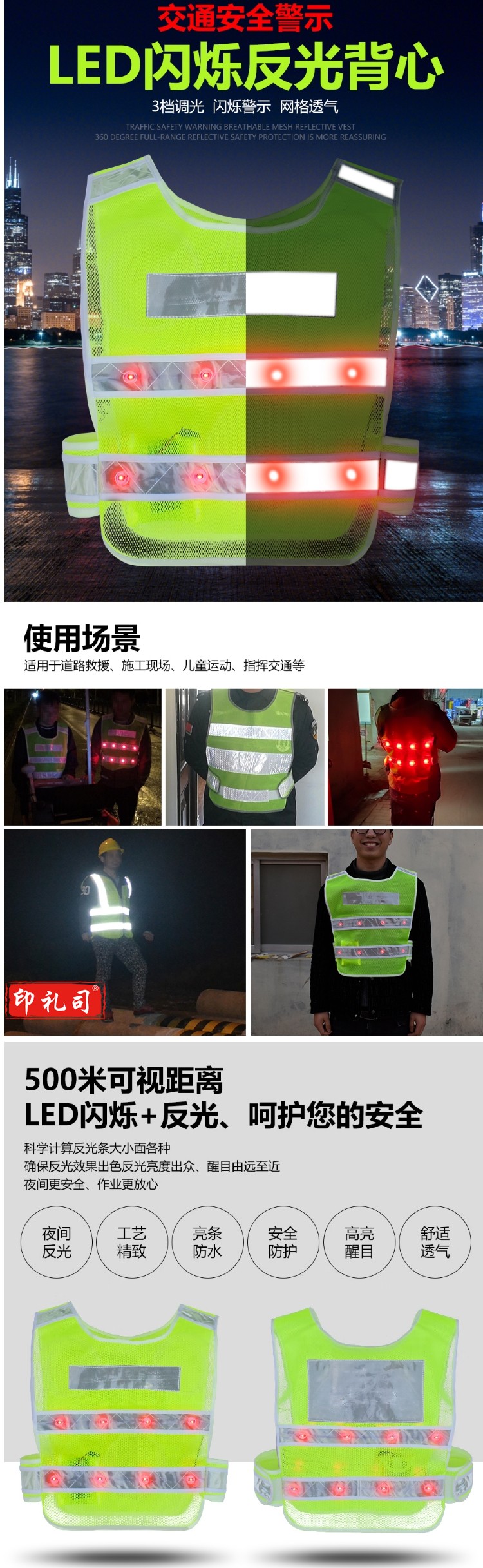 带灯LED反光背心 反光马甲 骑行反光衣 交通马甲 网格透气马甲 执勤安全服荧光