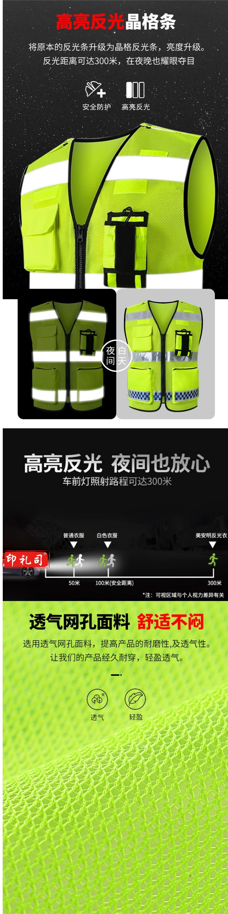 马甲多功能多口袋道路施工安全衣服 透气背心(网眼)