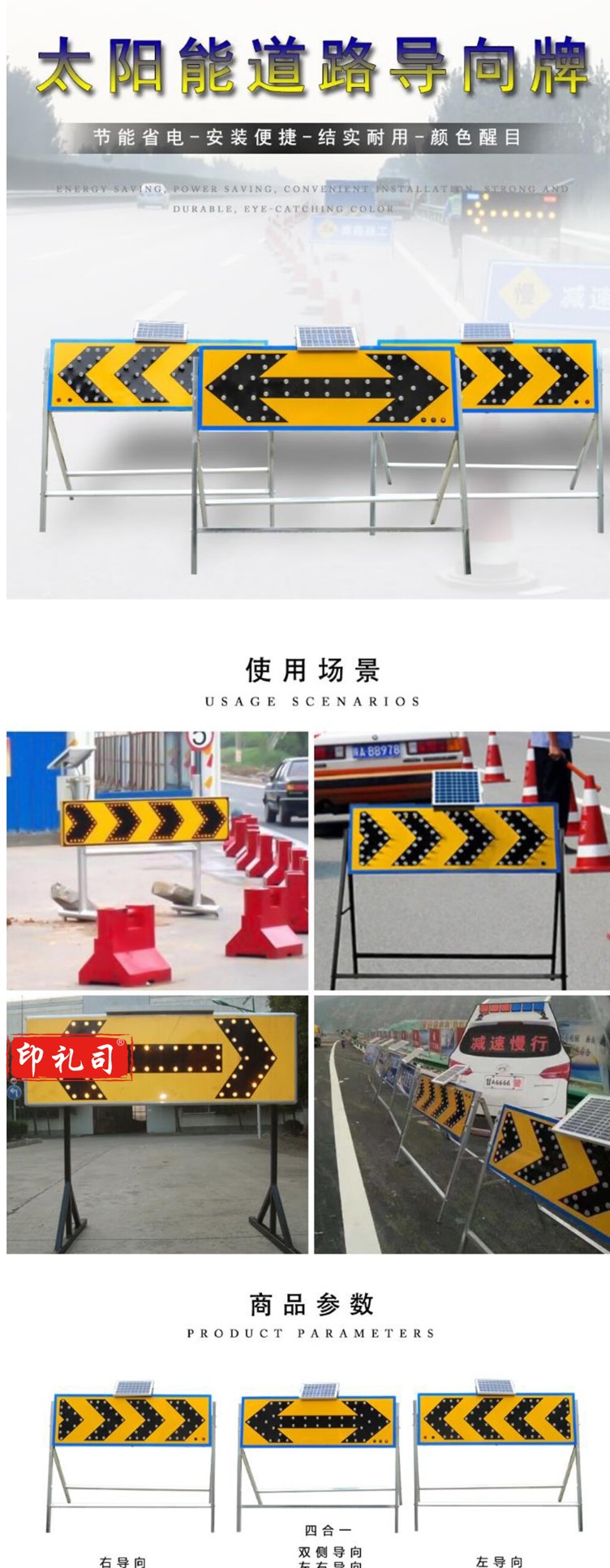 太阳能导向牌 LED道路施工牌夜间警示交通诱导灯 爆闪灯 箭头灯 太阳能导向灯 箭头右指向
