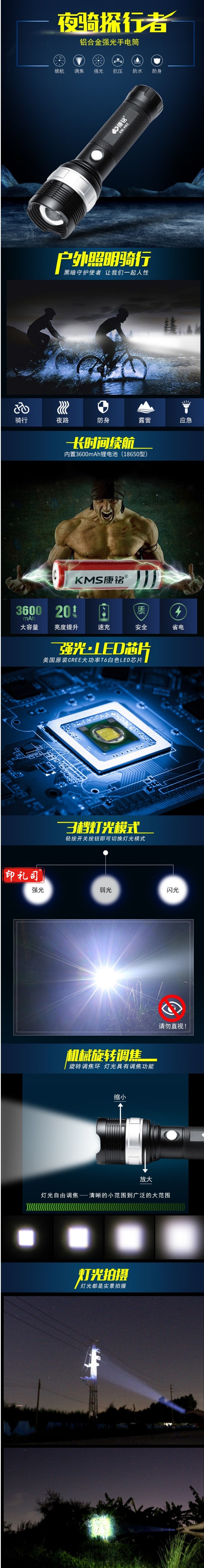 康铭强光手电筒可充电LED远射王迷你变焦手提探照灯家用户外骑行 KM-H02