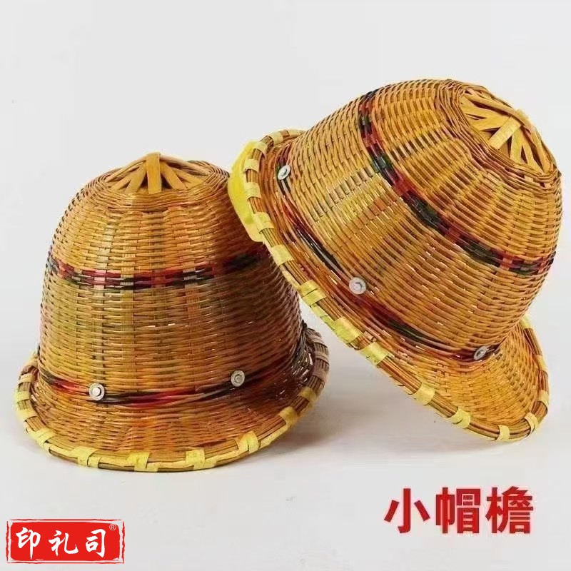 全帽防撞头盔透气竹编安全帽遮阳工地施工夏建筑园林演出藤帽 (小帽檐)