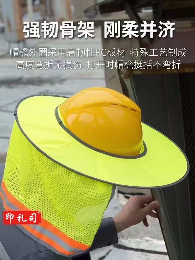 安全帽檐 建筑工地户外安装防晒帽遮阳帽 荧光绿